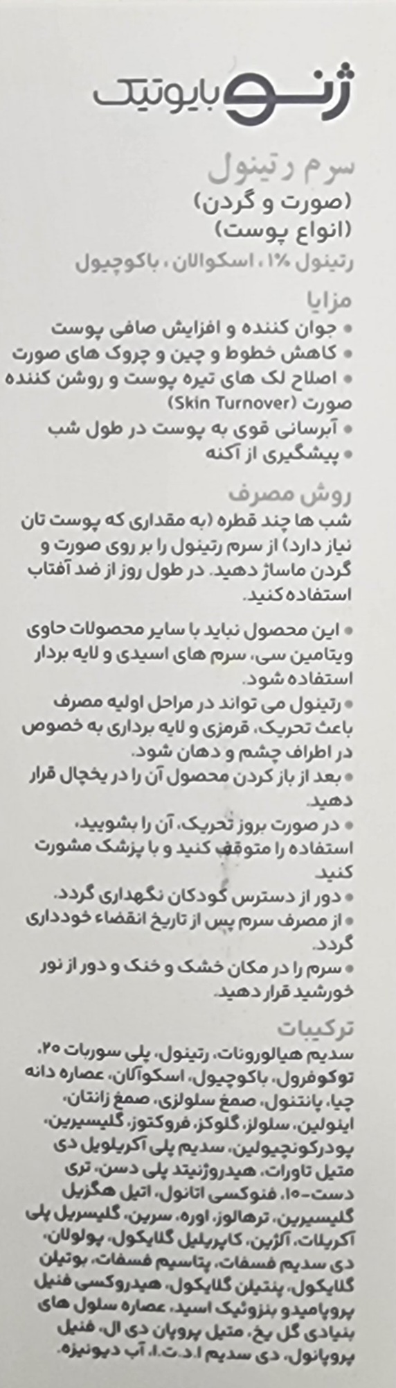 سرم رتینول سرو ژن ژنوبایوتیک ۲۰۲۸/۰۳