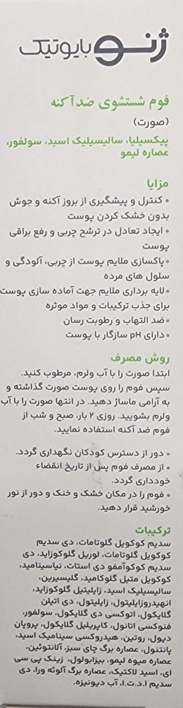 فوم شستشوی ضد آکنه سبوژن 1 ژنوبایوتیک ۱۴۰۶/۰۸
