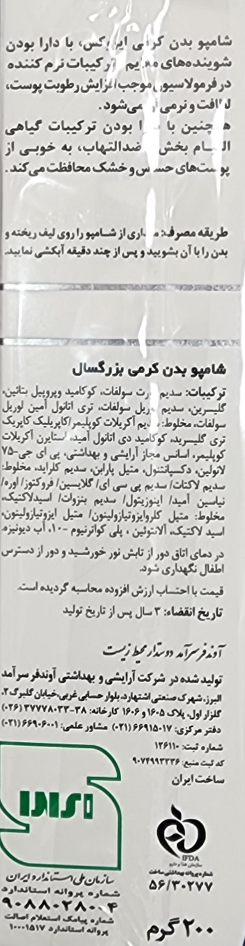 شامپو بدن کرمی پوست خشک و حساس ایروکس ۱۴۰۶/۰۹