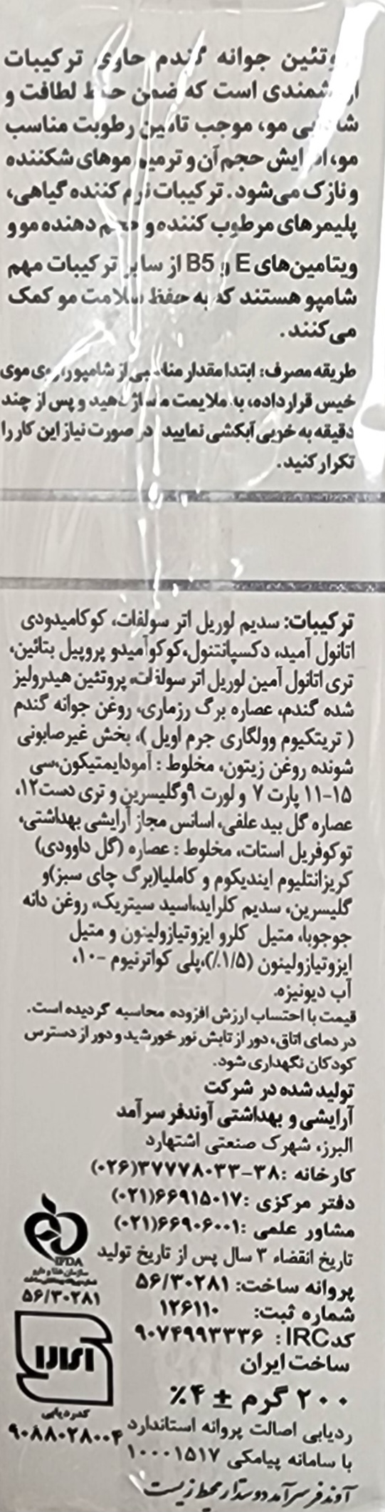 شامپو ایروکس جوانه گندم، حاوی کواترنیوم -10 و ویتامین های E و B5