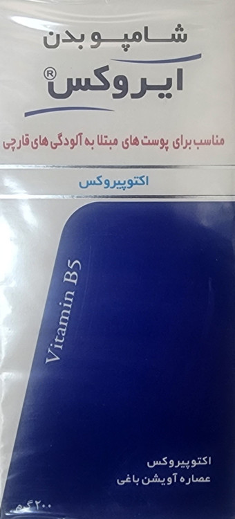 شامپو بدن ضد قارچ اکتو پیروکس 1 درصد ایروکس حاوی عصاره های گیاهی ضد قارچ و ضد باکتری بوده که در پیشگیری و درمان موضعی بیماری های قارچی پوست بسیار موثر است. این محصول همچنین دارای خواص ضد التهاب، التیام بخش، مرطوب کننده و نرم کننده بوده که موجب بهبود خارش، سوزش و خشکی پوست می گردد