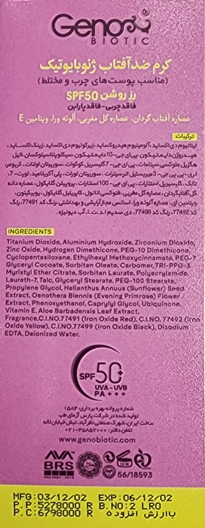 دارای SPF 50 بر اساس استانداردهای روز اروپا