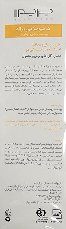 شامپو روزانه پریم، پاک کننده موثر و ایمن پوست سر حاوی سورفکتانت های طبیعی و اسید های ارگانیک