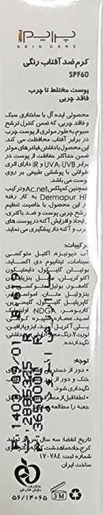 کرم ضد آفتاب پریم SPF60 فاقد چربی، با پوشانندگی بالا