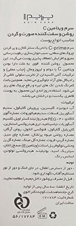 ژل ضد آفتاب حاوی ویتامین C پریم در تیوپ های 40 میلی لیتری موجود می باشد.