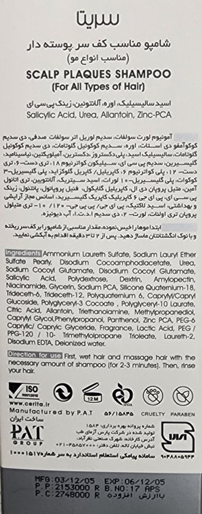 شامپو سریتا پسوریازیس دارای خاصیت ضد شوره و از بین بردن پوسته ریزی کف سر