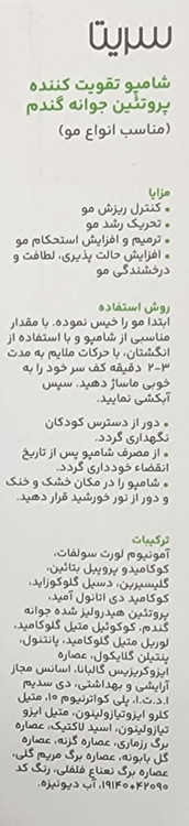 شامپو تقویت کننده جوانه گندم سریتا۱۴۰۶/۱۲