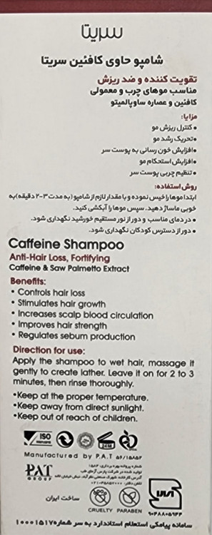 شامپو کافئین سریتا موی چرب و معمولی ۱۴۰۵/۱۱