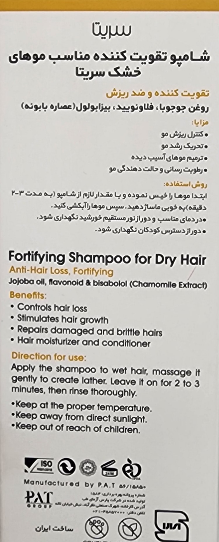 شامپو سریتا برای موهای خشک جلوگیری از ریزش موی سر