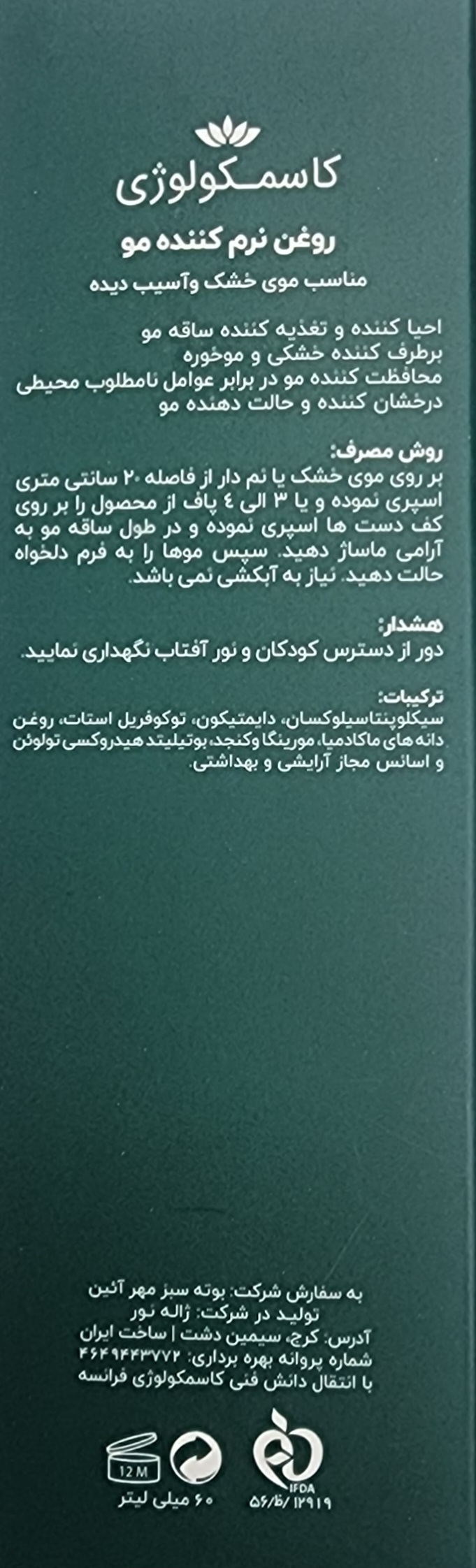 روغن نرم کننده مو کاسمکولوژی 60 میلی لیتر۱۴۰۵/۱۲