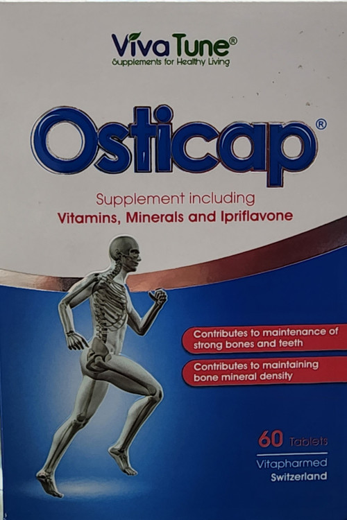 قرص osticap مکمل تغذیه ای تخصصی جهت حفظ سلامت استخوان ها است. فرمولاسیون این مکمل که شامل ویتامین ها و مواد معدنی به همراه ترکیب ویژه ایپریفلاون است، به حفظ تراکم استخوان ها کمک کرده و ریسک ابتلا به پوکی استخوان را کاهش میدهد.دو عدد هر ۱۲ ساعت بعد از غذامصرف شود.
