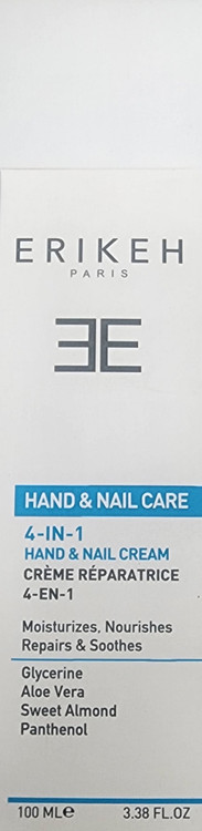 کرم مرطوب کننده دست ۴ در ۱ اریکه نرم کننده و محافظت کننده پوست دست می باشد که با دارا بودن ترکیباتی همچون روغن بادام شیرین، گلیسیرین و آلوئه ورا باعث ترمیم و بازسازی پوست دست می گردد.