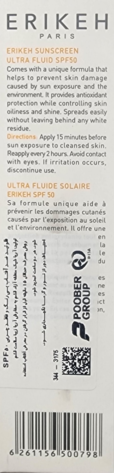 فلوئید ضد آفتاب اریکه SPF50 مناسب پوست چرب و مختلط، محافظ موثر پوست
