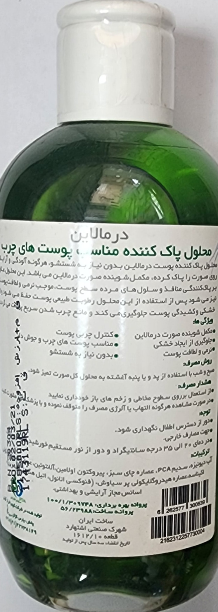 تونر پوست چرب درمالاین، پاک کننده قدرتمند بدون نیاز به آبکشی