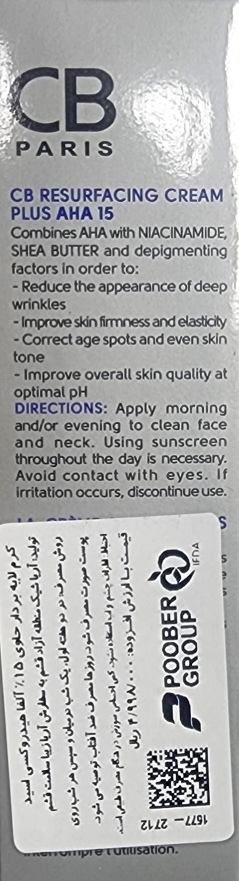 کرم لایه بردار سی بی پاریس 15 درصد آلفا هیدروکسی اسید، مناسب انواع پوست
