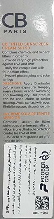 کرم ضدآفتاب رنگی پوست مختلط تا چرب بژ روشن SPF50 سی بی ۲۰۲۸/۱۰
