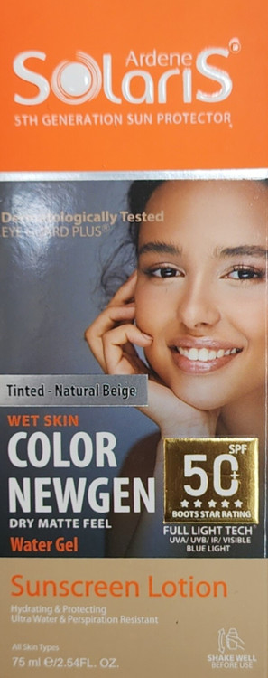 ضد آفتاب رنگی «کالر نیوژن» آردن سولاریس، یک لوسیون ضد آفتاب با SPF50 است که در دو رنگ بژ روشن و بژ طبیعی موجود میباشد و برای انواع پوست مناسب است [1، 2، 3]. این ضد آفتاب دارای پوشش کرم پودری سبک و یکنواخت است و از پوست در برابر اشعههای UVA و UVB محافظت میکند