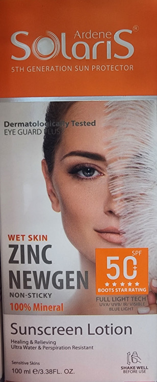 لوسیون ضد آفتاب زینک نیوژن SPF50(آردن سولاریس)(انقضا۲۰۲۶/۱۰)