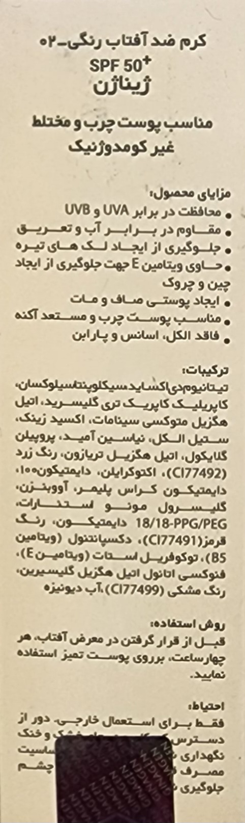 کرم ضد آفتاب رنگی پوست چرب شماره SPF50) 02)ژیناژن۱۴۰۵/۱۲