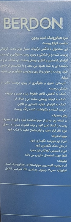 سرم هیالورونیک اسید بردن دارای خاصیت آبرسانی و برطرف کننده خشکی و زبری