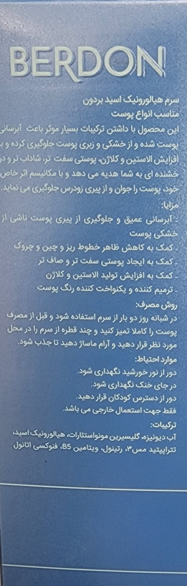 سرم هیالورونیک اسید بردن دارای خاصیت آبرسانی و برطرف کننده خشکی و زبری