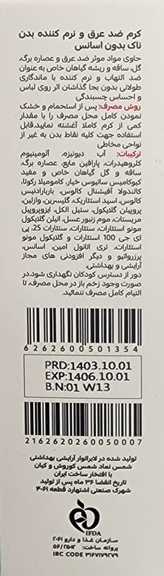 کرم ضد تعریق ناک جلوگیری کننده موثر از بوی نامطبوع بدن