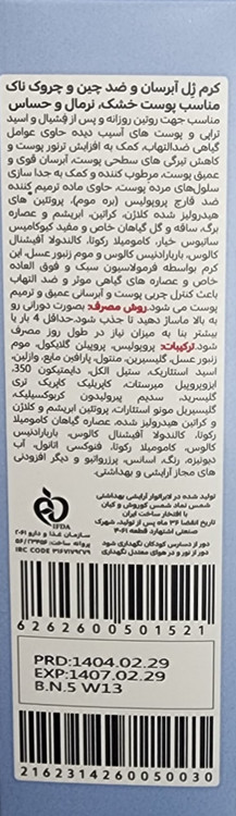کرم ژل آبرسان مناسب پوست خشک نرمال و حساس ناک ۱۴۰۷/۰۲