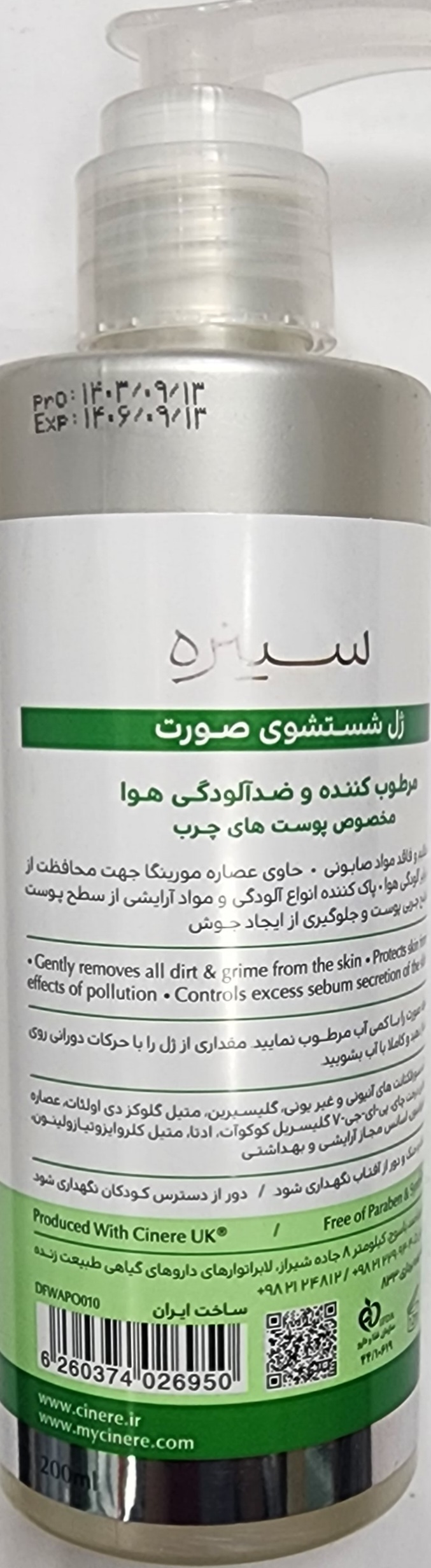 ژل شستشوی صورت ضد آلودگی هوا پوست چرب سینره ۱۴۰۶/۰۳
