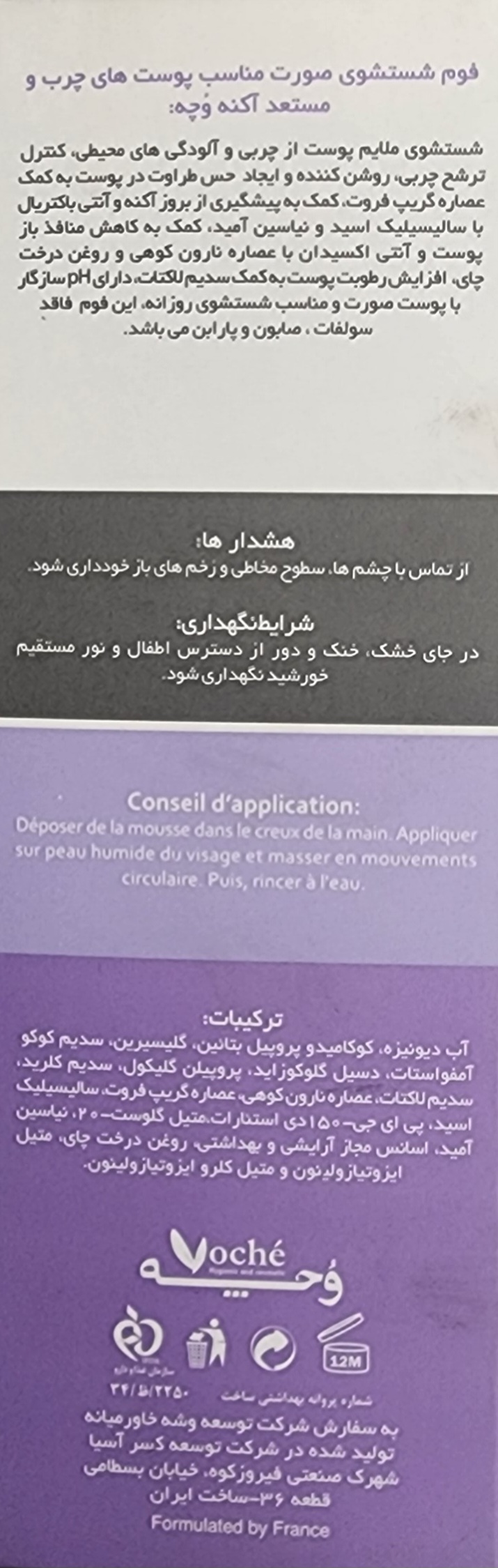 فوم شستشوی صورت پوست خشک و حساس وچه ۱۴۰۶/۰۲