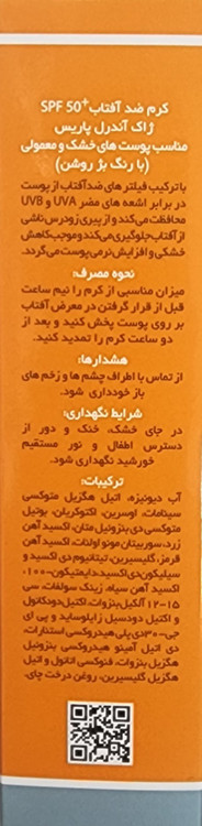 دارای فیلترهای شیمیایی و فیزیکی مانند اتیل هگزیل متوکسی سینامات و تیتانیوم دی اکساید