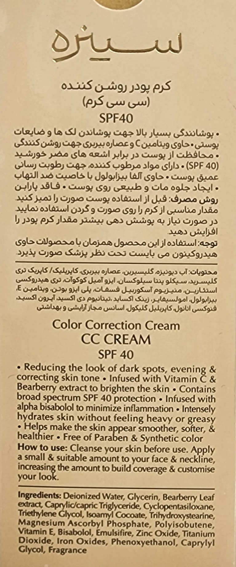 سی سی کرم سینره SPF40(بژ متوسط) ۱۴۰۶/۱۰