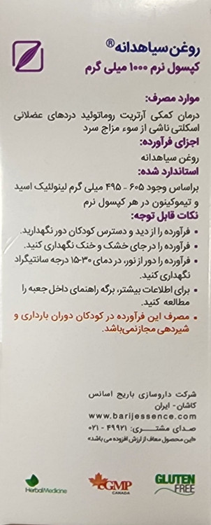 کپسول روغن سیاه دانه درمان کمکی آرتریت روماتوئید به علت اثرات ضد التهابی و ضد دردی