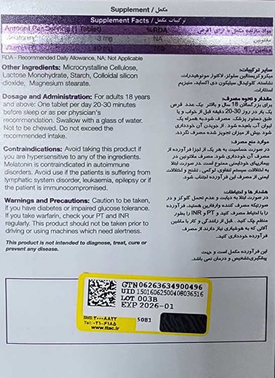 قرص کورکتیا، حاوی ملاتونین و ویتامین B6