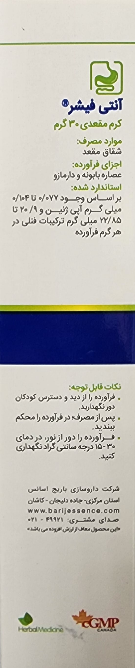 کرم آنتی فیشر مقعدی باریج، حاوی مواد موثره آپی ژنین و فنل