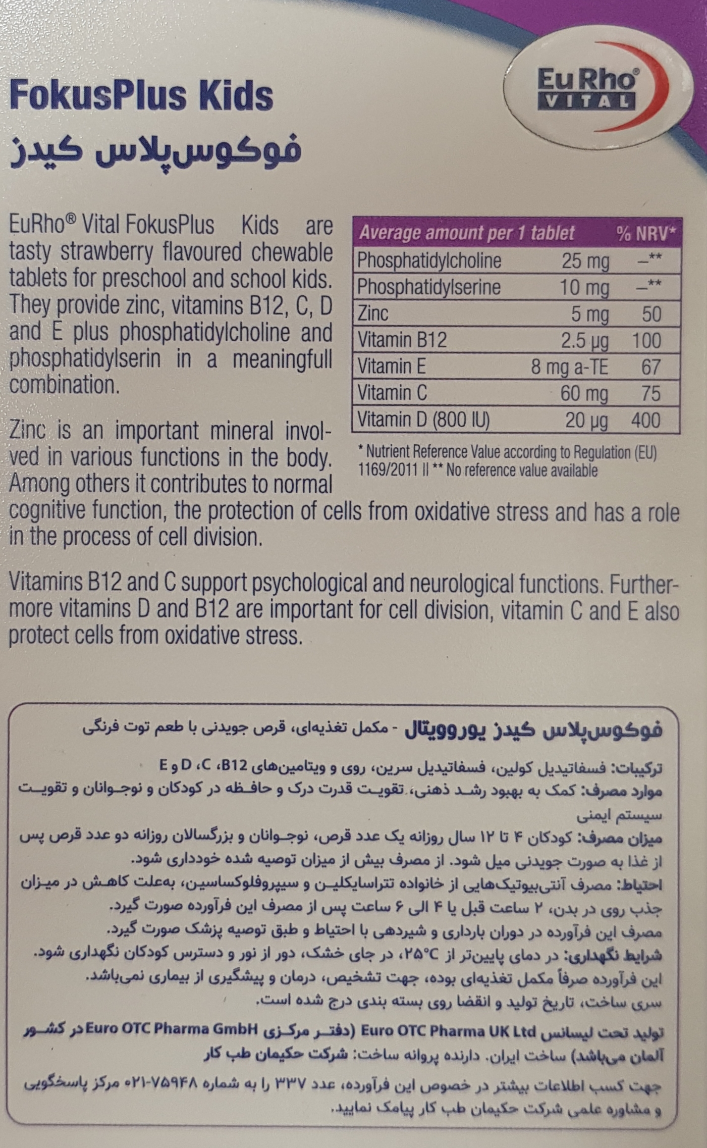 فوکوس پلاس کیدز قرص جویدنی۶۰عددی یوروویتال۲۰۲۷/۰۷