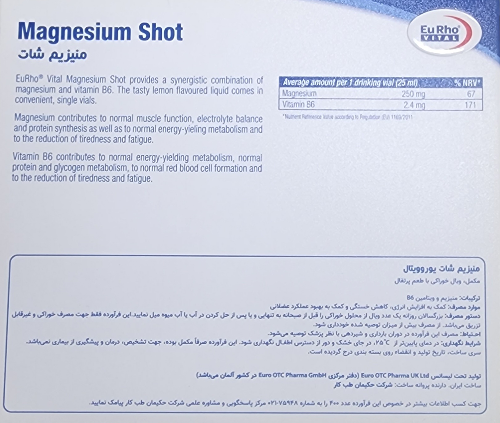 منیزیم شات ۶عددی ویال خوراکی یوروویتال ۲۰۲۶/۱۱