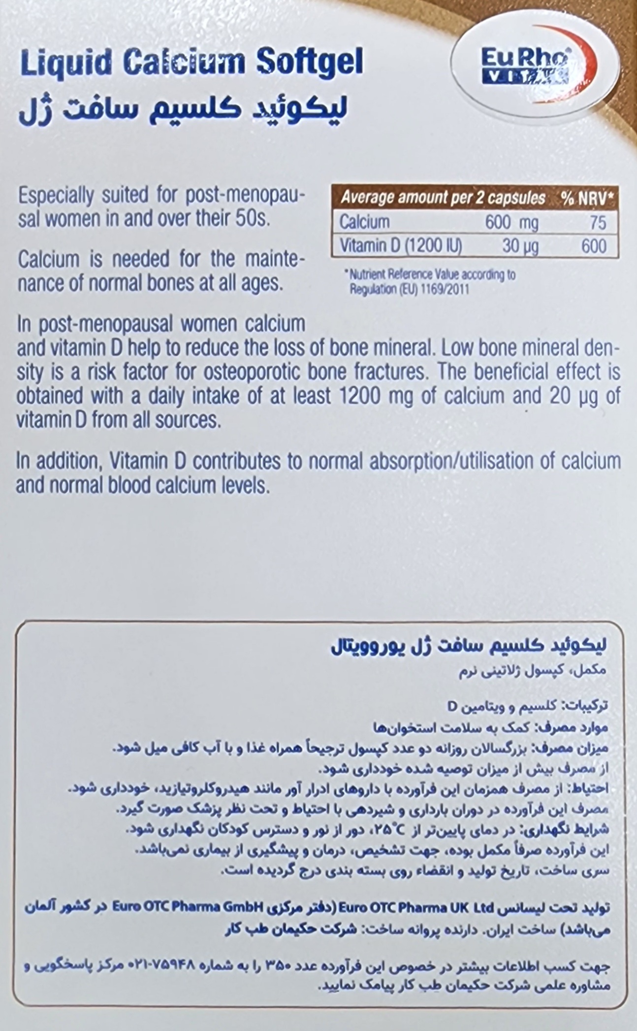 لیکوئید کلسیم سافت ژل۶۰عددی یوروویتال ۲۰۲۶/۱۰