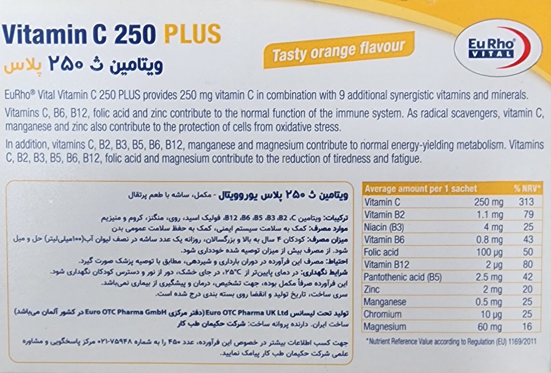 ویتامین سی ساشه 250 میلی گرم پلاس کیدز یوروویتال ۳۰عدد۲۰۲۶/۵