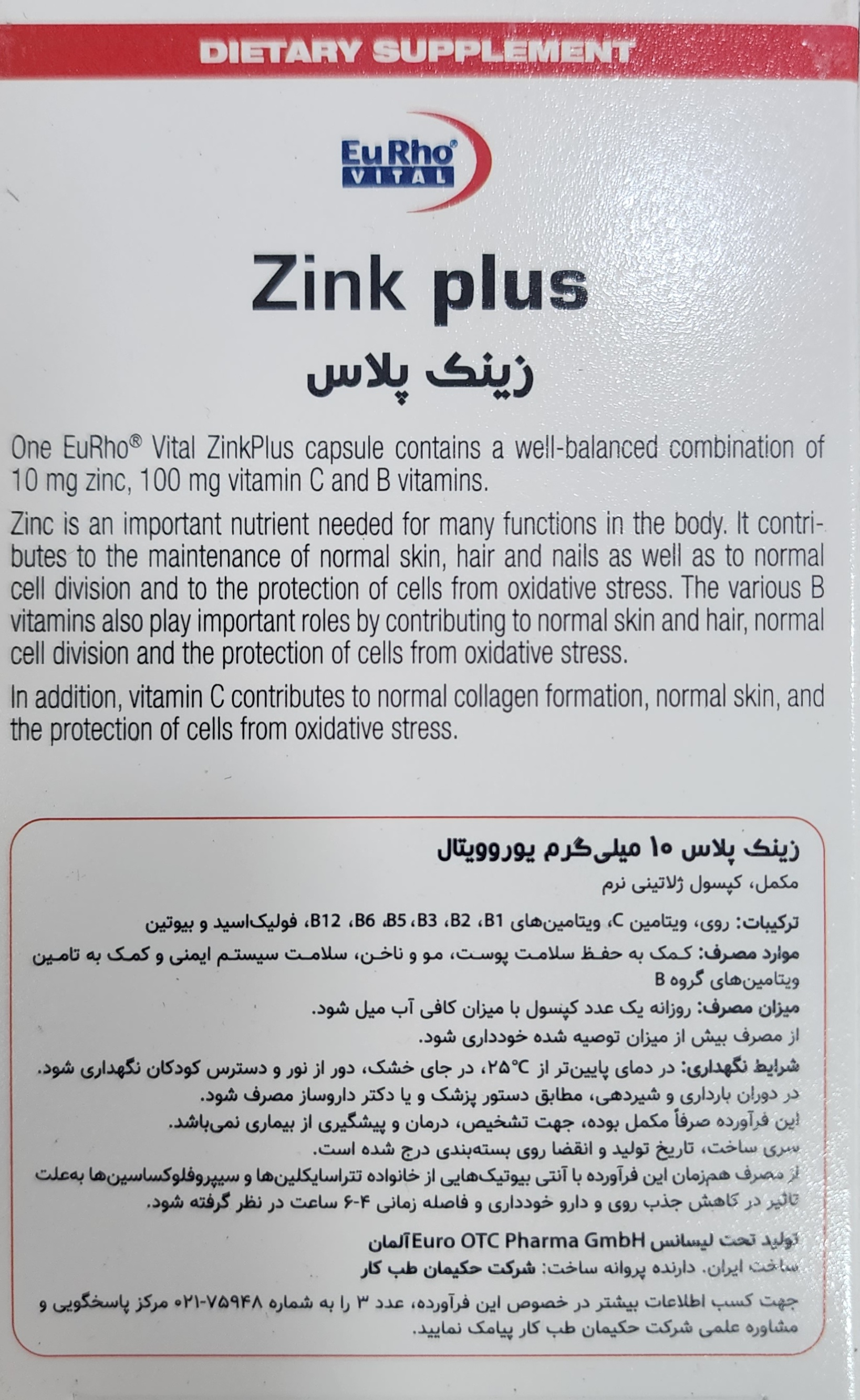 زینک پلاس 10 یوروویتال مکملی برای حفظ سلامت پوست، مو و ناخن