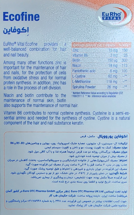هر جعبه از قرص اکوفاین یوروویتال، مناسب استفاده به مدت 30 روز میباشد.