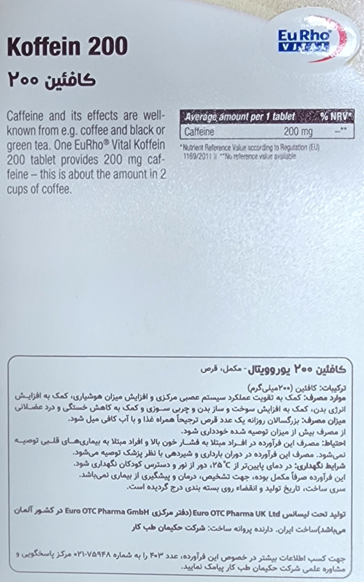 کافئین یوروویتال قرص 200 میلی گرم ۶۰عددی۲۰۲۶/۰۶