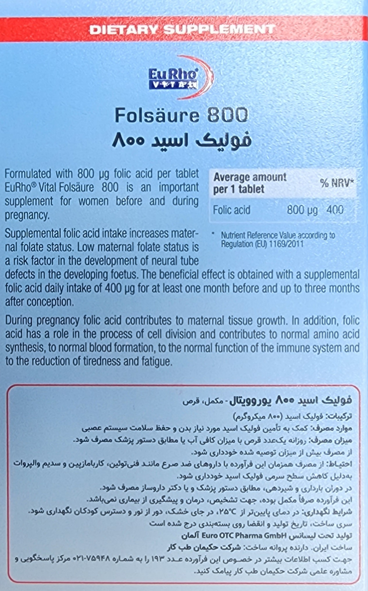 فولیک اسید 800 یوروویتال، موثر در پیشگیری از نقص لوله عصبی (NTD) در جنین