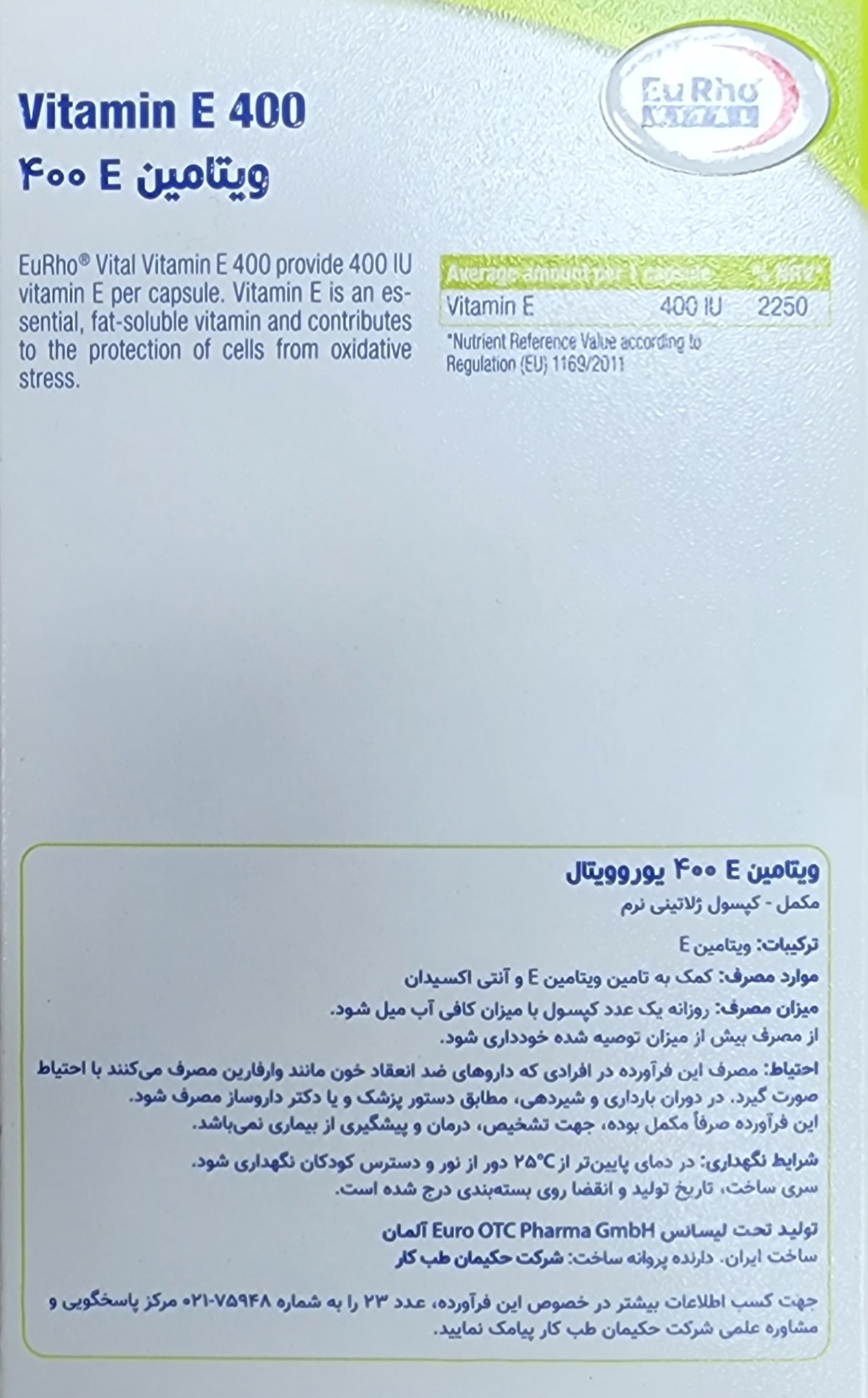 ویتامین ای یوروویتال، کمک به تامین ویتامین E روزانه بدن