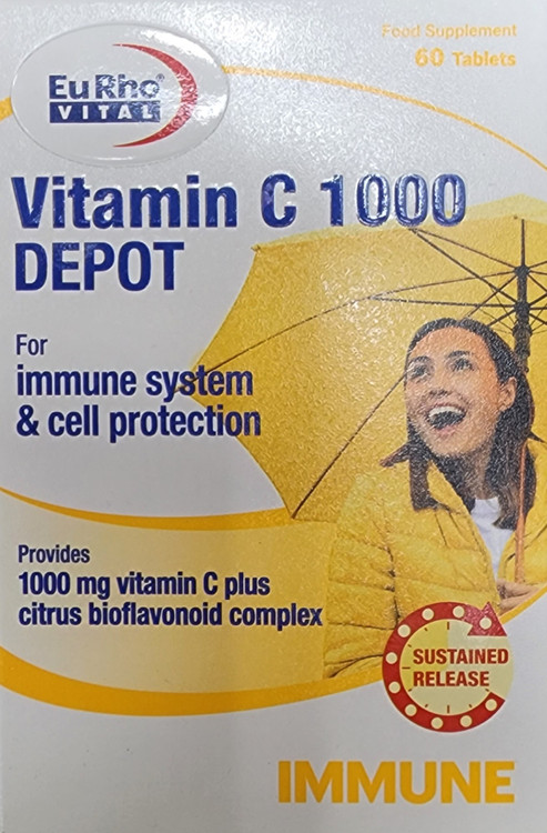 ویتامین سی 1000 میلی گرم دپو یوروویتال قرص ۶۰عددی ۲۰۲۷/۰۵