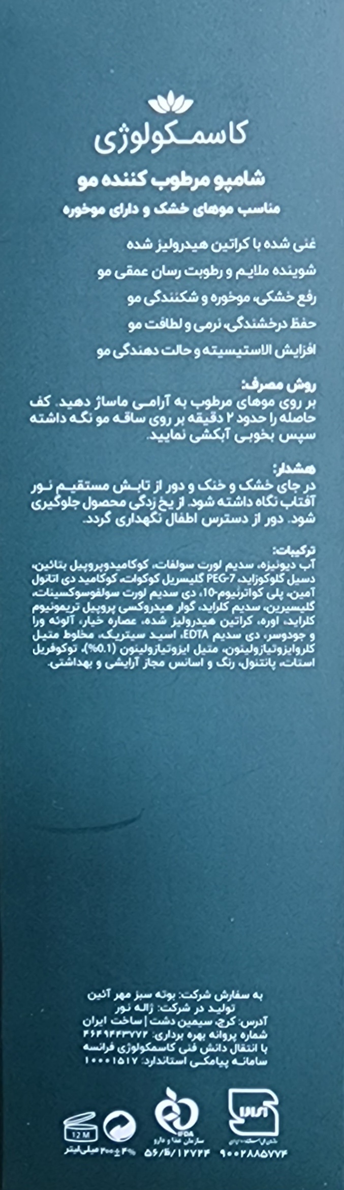 شامپو مرطوب کننده موی خشک و دارای موخوره کاسمکولوژی، پاک کننده و آبرسان