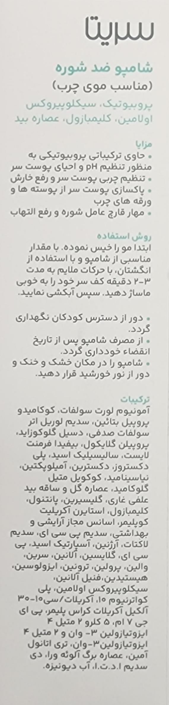 شامپو ضد شوره سریتا برای موهای چرب، مهار کننده فعالیت عوامل ایجاد شوره و ضد قارچ