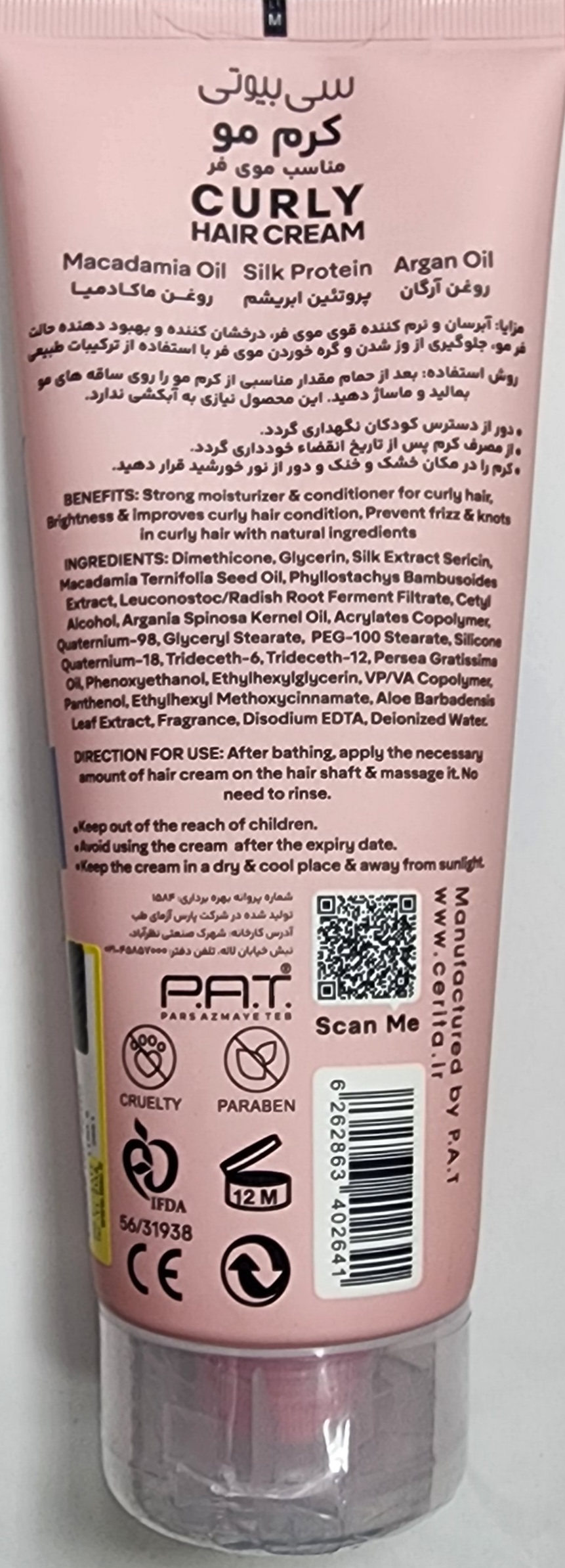 کرم مخصوص موی فر سریتا تولید شده در حجم 200 میلی لیتر