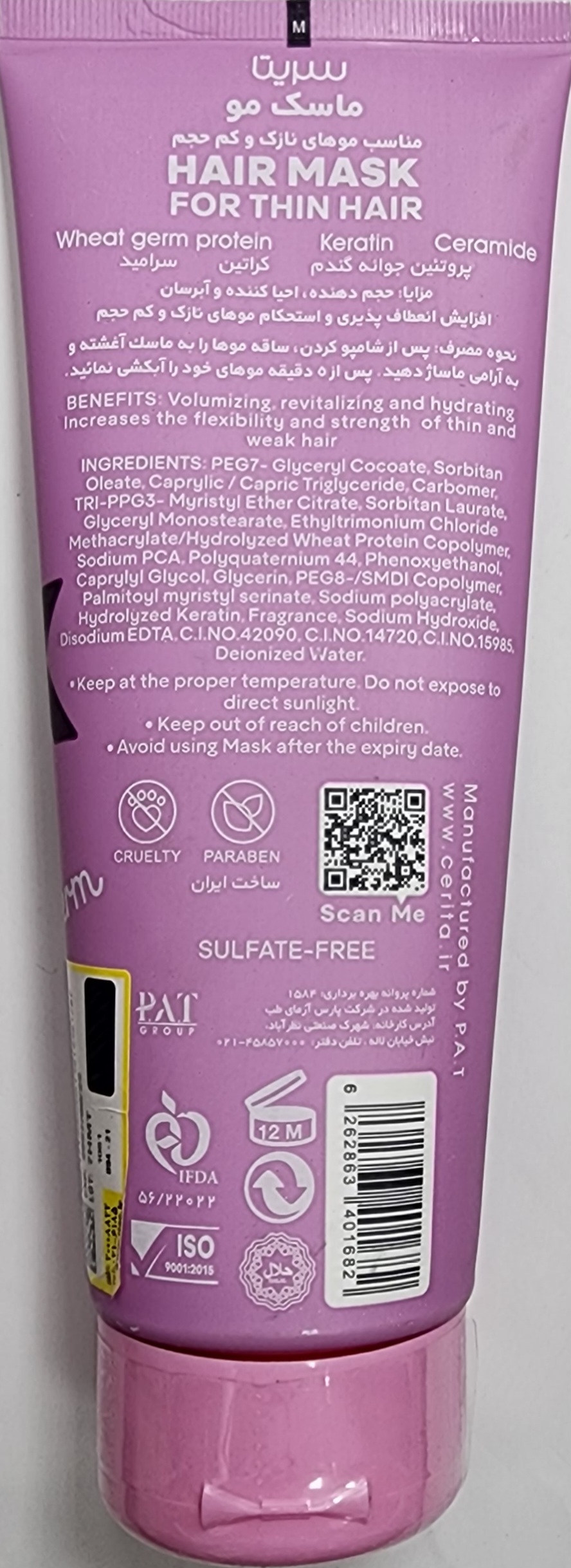 ماسک مو برای موهای نازک سریتا، حاوی پروتئین جوانه گندم و کراتین