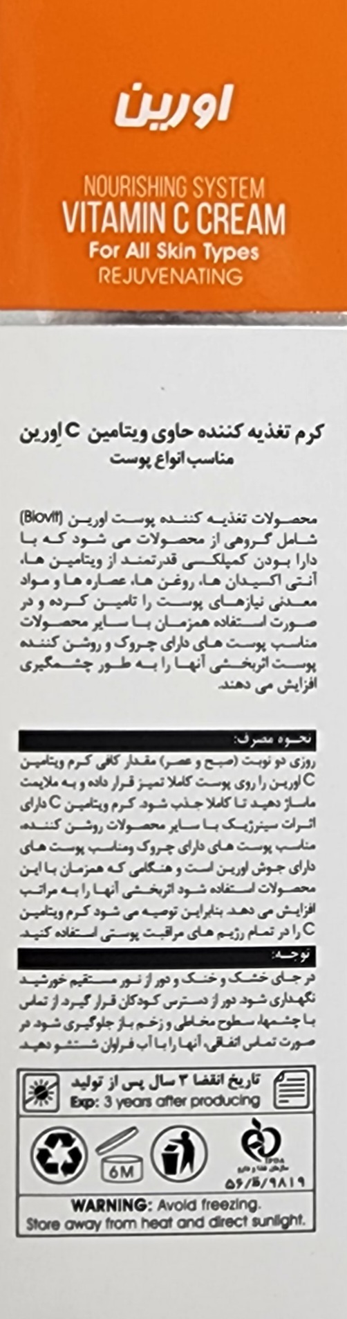 کرم ویتامین سی اورین برطرف کننده چین و چروک های سطحی