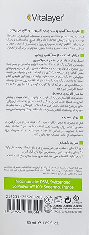 ضد آفتاب پوست چرب ویتالیر، دارای بافتی زود جذب و فاقد چربی